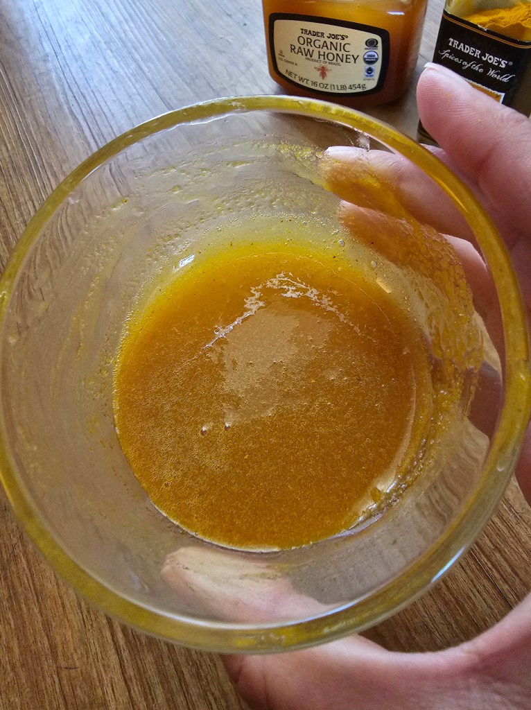 For this mask, the turmeric and honey needed is a staple in my kitchen cabinet. I have my raw honey that I get from Trader Joes for Less than 6 dollars and will last me a while. I use it in my teas all the time, when I am sick and for some recipes that call for a drizzle of it. Turmeric I get from Trader Joes for a small price of about $ 2.99. I use it religiously to whiten my teeth when giving them a break from whitening strips. Been using it for years and I love it. My teeth turn out really white after using my homemade paste and I don’t harm them.