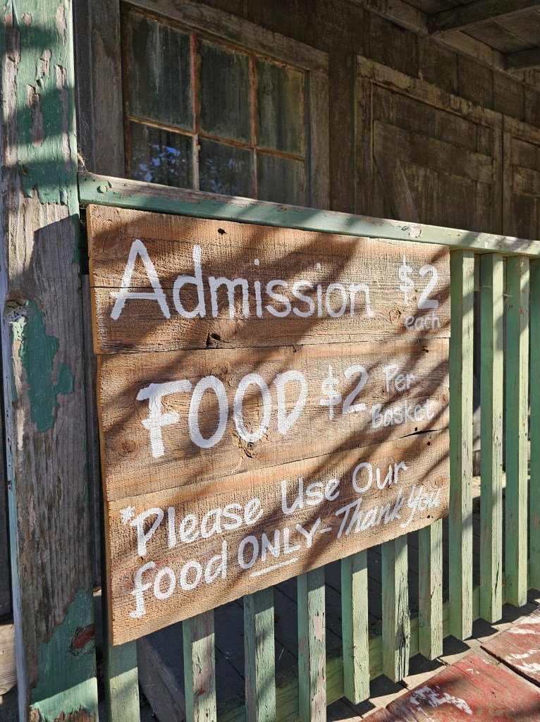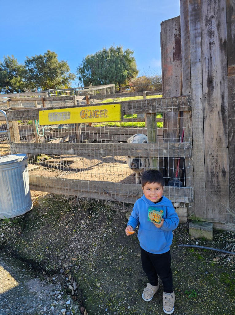 I was so happy that we were able to see some cute farm animals. In my opinion, this little barn is better than the bigger barn for little ones because they get more interaction with the animals. Also, I am not a big fan of crowds, and that barn has gotten a lot more traffic over the past years. This barn was perfect for us! We were able to take our time and spend more time with the animals. We were the only ones there today! We even walked over to the little feed store on the property to look around, and we got some cute dog treats for our family dogs. Here are some pictures of our little stop ❤️