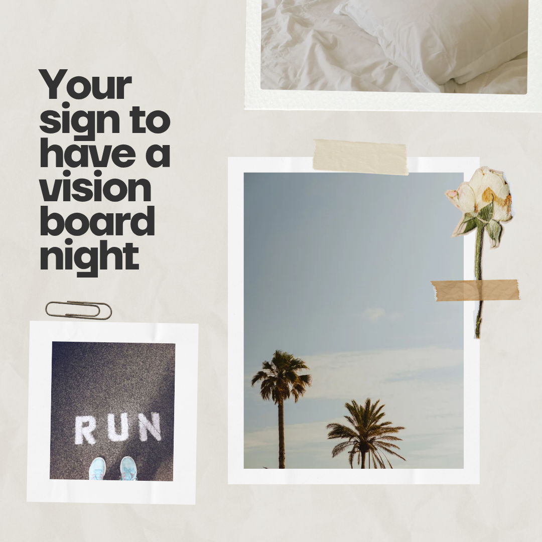 Hi friends, Happy New Year to you all. I hope this 2025 has been off to a productive and great start for everyone. This is the time of the year when we all set new goals, whether that be fitness goals, career goals, or personal goals, and this is the time most of us commit … Continue reading Your sign to have a vision board night