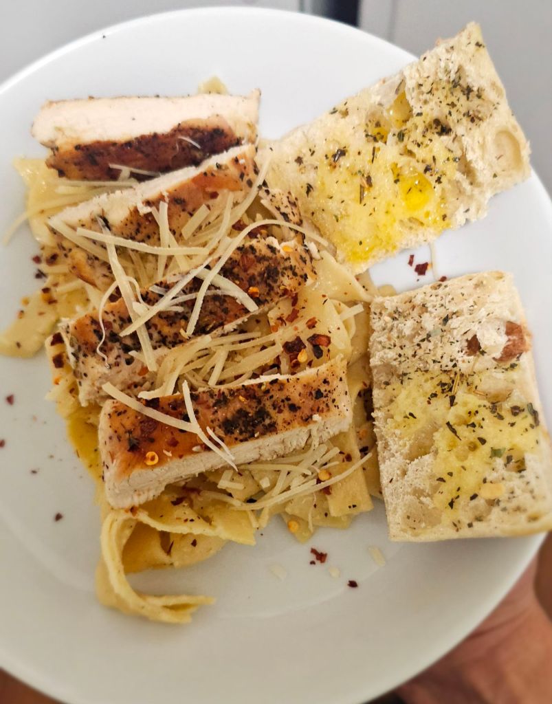 Chicken Alfredo has become a quick staple on our house.. I learned to make the sauce from scratch about 2 years ago, and now I can’t go back. The sauce calls for just a couple of ingredients that I pick up all at Trader Joes, and it’s way cleaner than the pre made sauces in cans. While the chicken is grilling, I make the sauce, the noodles, and DONE. I have learned to perfect my chicken to be juicy and tender, and I’m really proud of it. My kids love it, and dinner is done in less than 30 minutes. I love that it’s so simple but so delicious.