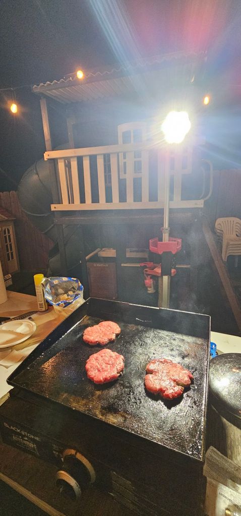 Burgers are so easy to make. So easy. We always make sure to have tomatoes, onions, pickles, and all the toppings in our fridge ready to be cut up in the evening. We get some buns, meat patties, or sometimes we make our own patties, caramelize some onions, even throw in some bacon and done. CA Fresh has amazing and huge patties, but so do our local Vons. Burgers are my little ones’ favorite food, and he can finish a full sized burger on his own. We always make ours outside just to not get the inside greasy.