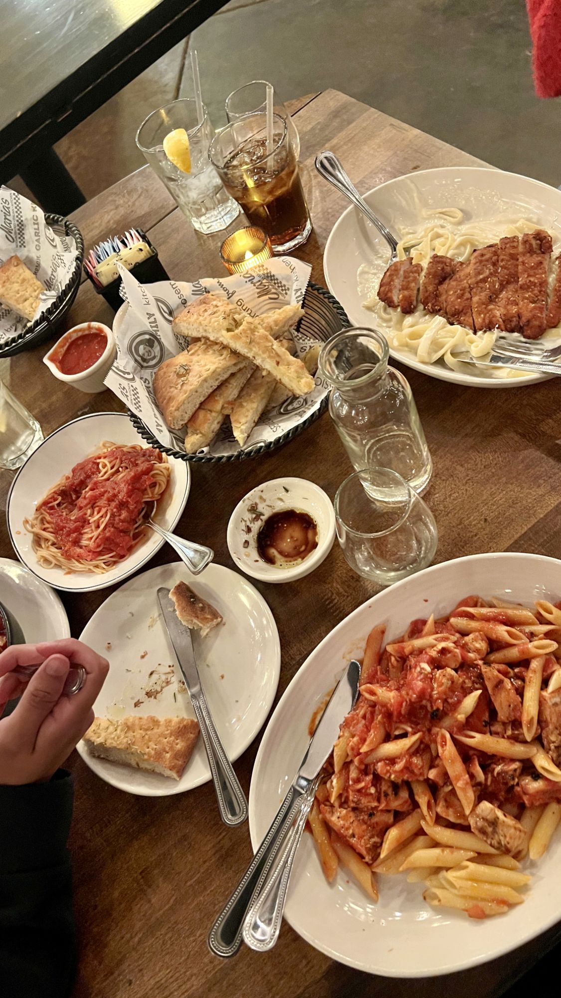 For our much anticipated “carb loading” night, we visited Maria’s Italian Restaurant within walking distance from our hotel. We got to enjoy a nice pre race walk to dinner there and back.. We were also here last year, and the food was just as yummy at that time. I got chicken Alfredo, and our server suggested I try fried chicken instead of grilled, and it was a game changer. 10 out of 10. They have yummy bread, which they bring out to the table fresh out of the oven.